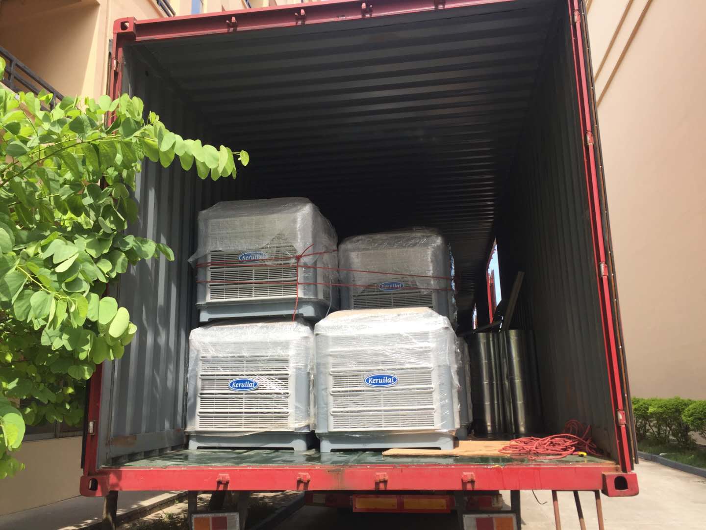 22.5米車廂整整一車科瑞萊工業(yè)環(huán)保冷風(fēng)機(jī)空調(diào)KD18機(jī)器整裝待發(fā),謝謝客戶對(duì)我們科瑞萊品牌的信任與支持。